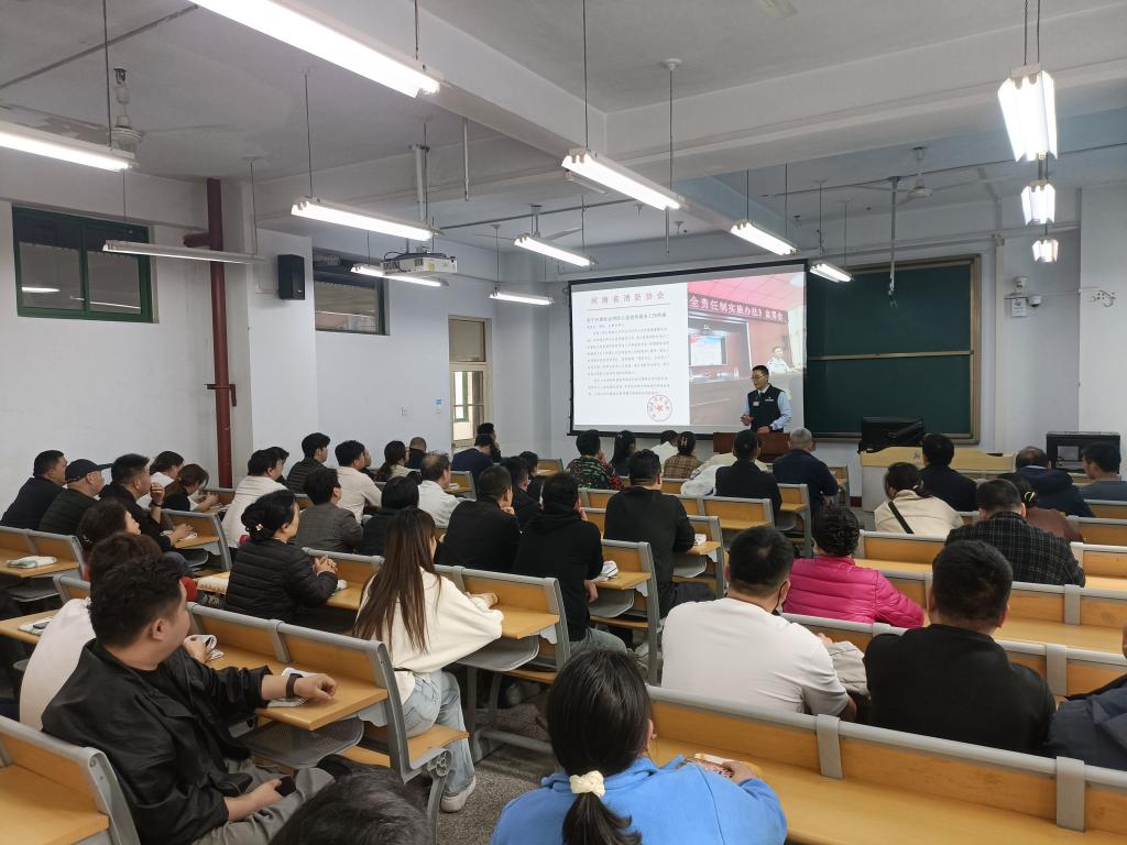 为深入落实学校新学期安全稳定工作部署,切实筑牢校园消防安全防线,3月26日下午,校地合作办公室组织全体教职工及服务区商铺经营管理人员,开展消防安全专题培训与应急疏散演练,活动特邀河南省消防安全协会教官全程指导。