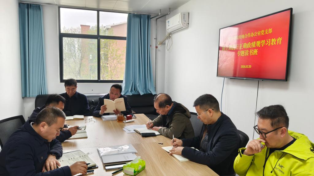 2026年3月30日至31日,校地合作办公室党支部树立和践行正确政绩观学习教育专题读书班顺利举办。全体党员通过集中领学、个人自学、交流研讨、心得撰写等多种形式,推动学习教育入脑入心、见行见效。